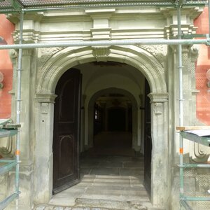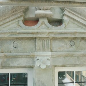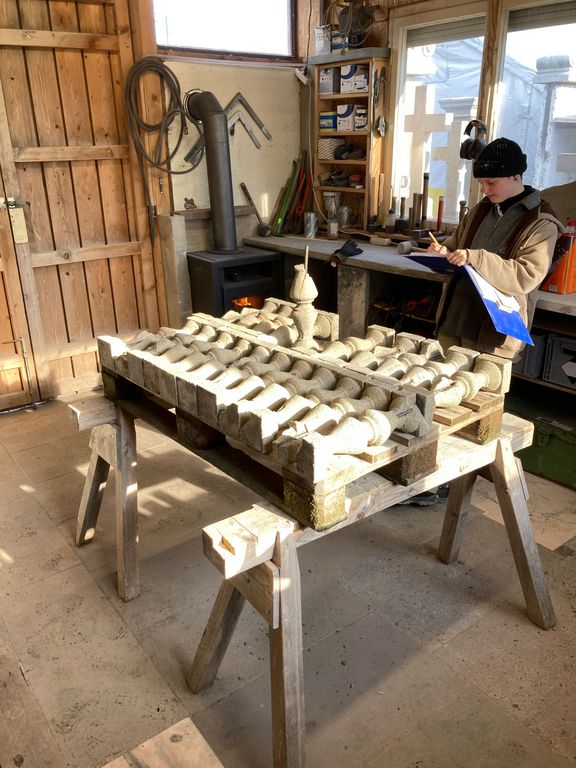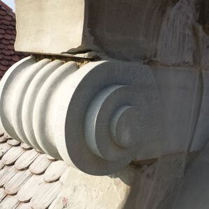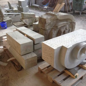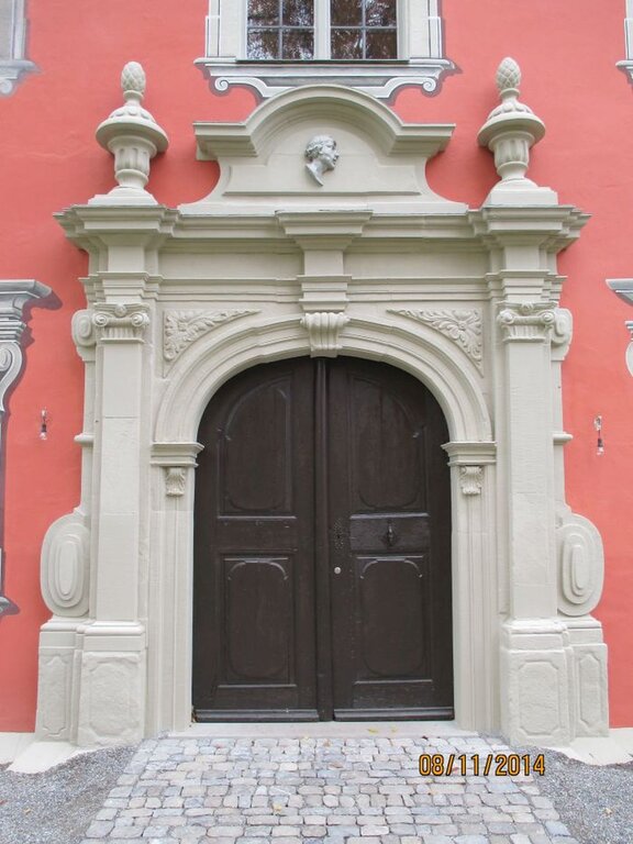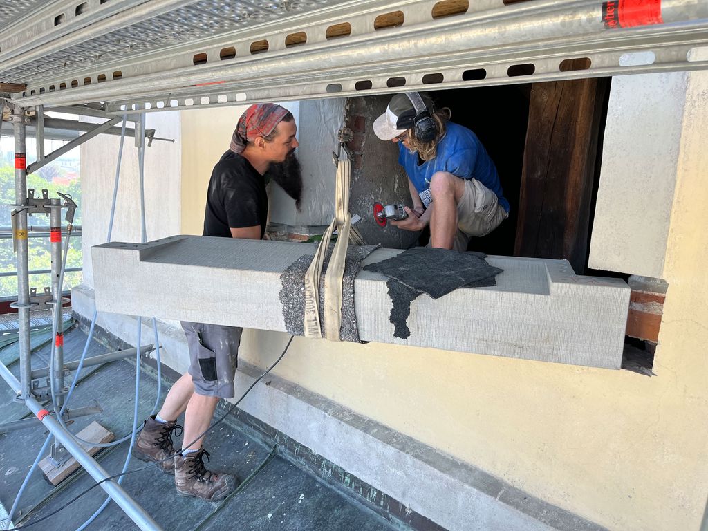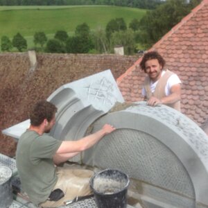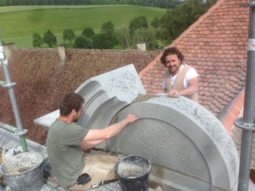Schloß Salem, Marstallgebäude. Restaurierung der Aussenfassade. Neuteil aus Rorschacher Sandstein.
