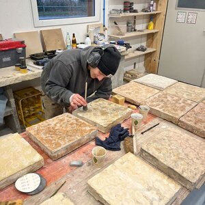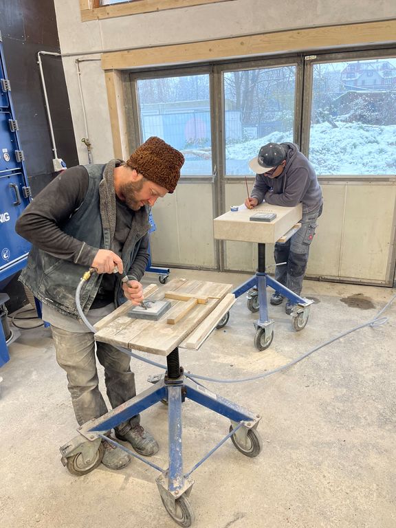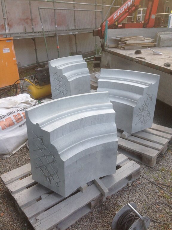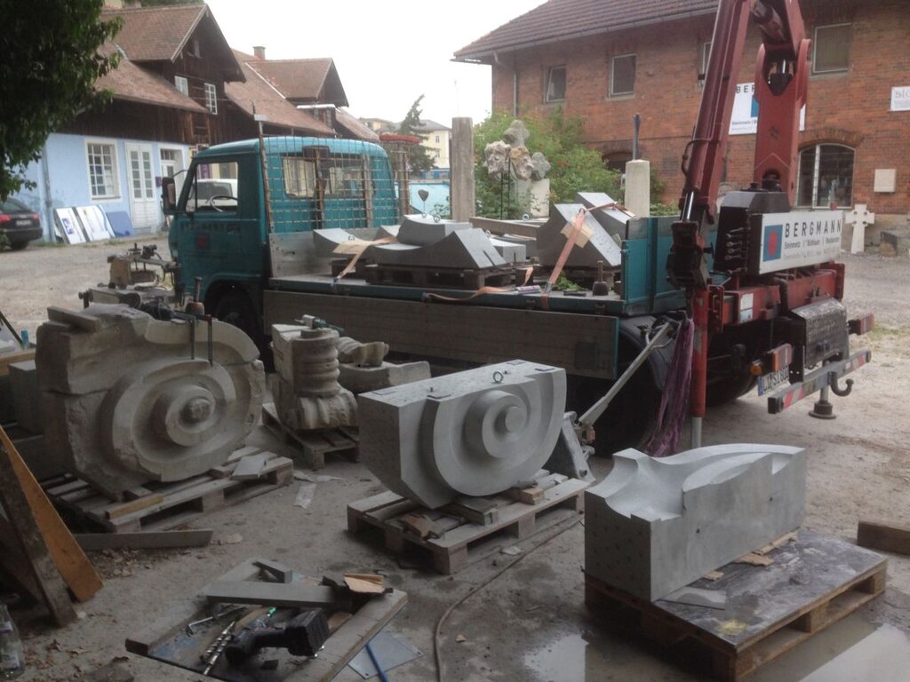 Lenbachhaus München, Neuanfertigung und Montage von Kalksteinsockeln für Kunstwerke der städtischen Galerie.