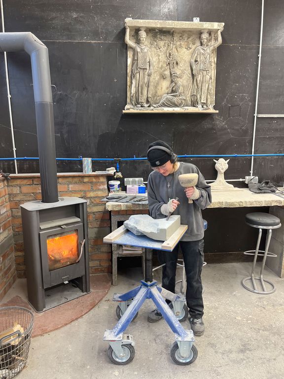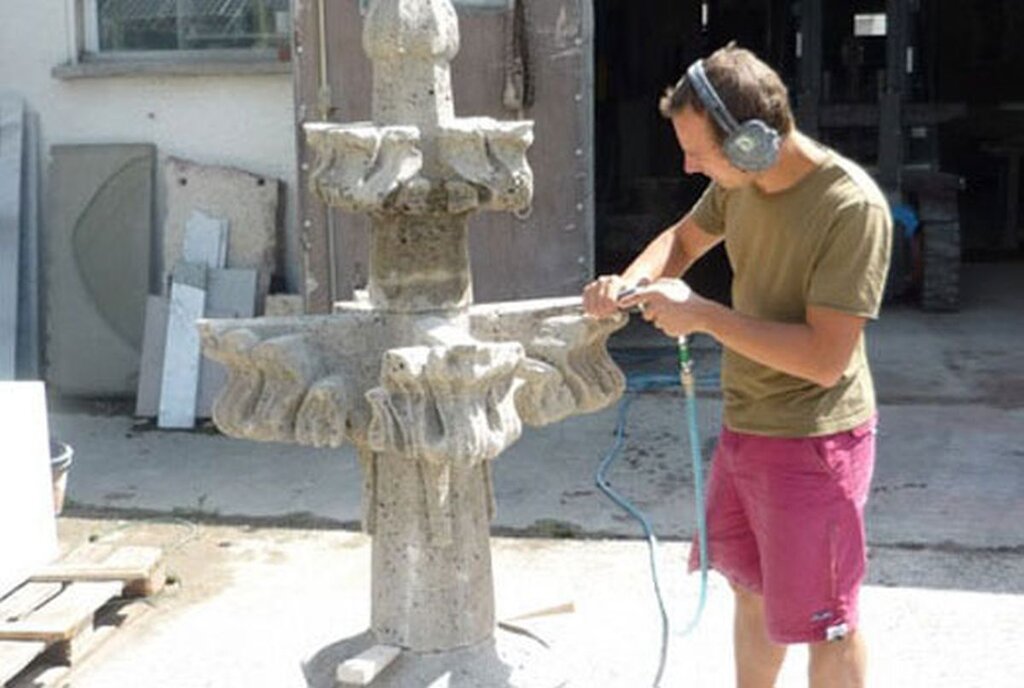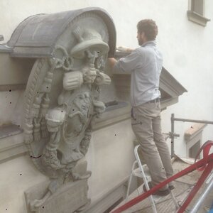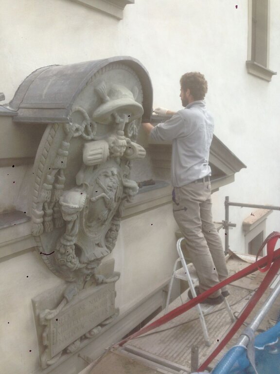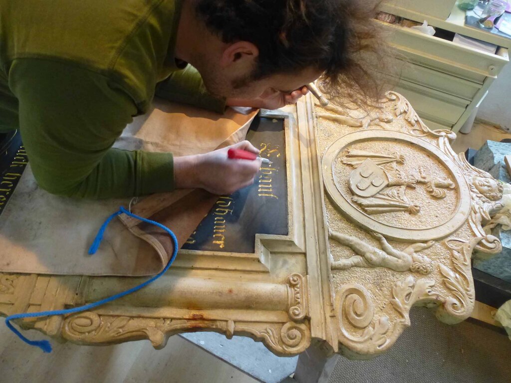 Lenbachhaus München, Restaurierung Epitaph Jura Kalkstein-nachher.