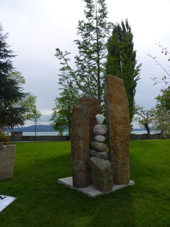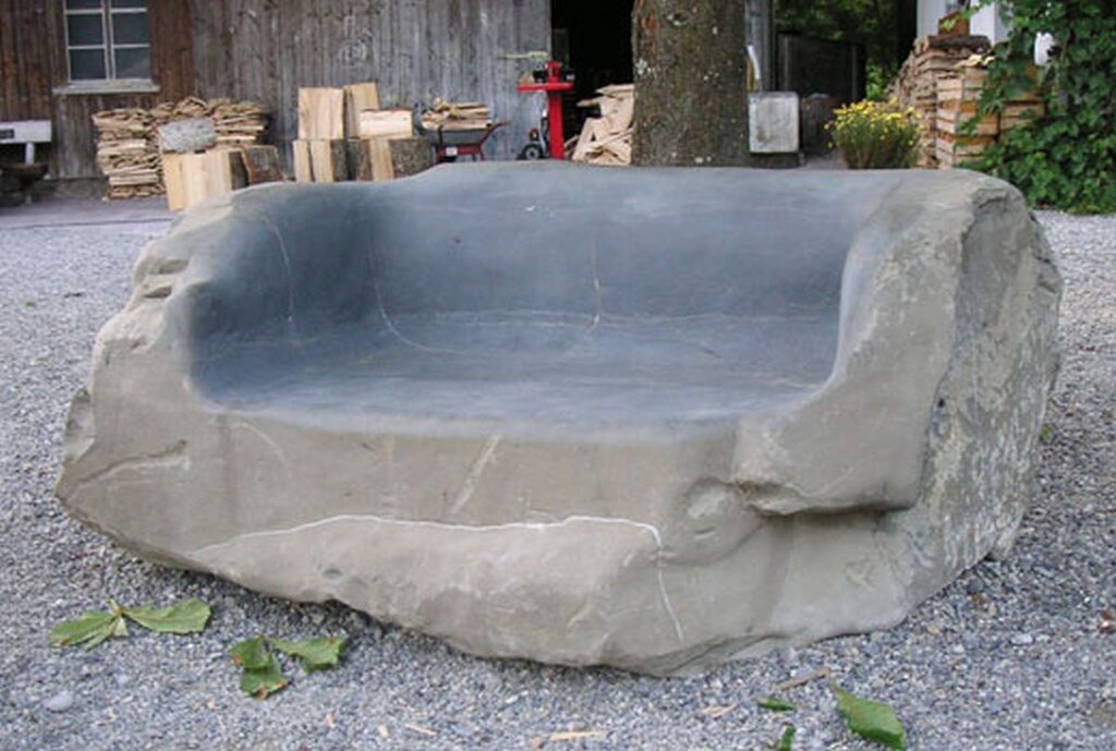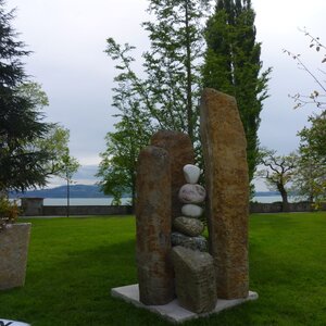 Brunnen aus Basaltsteelen und Findlingen, privat.