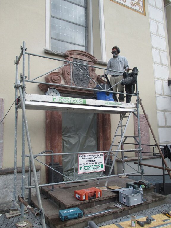 Konstanz Obermarkt 1, Restaurierung Wappenrelief.