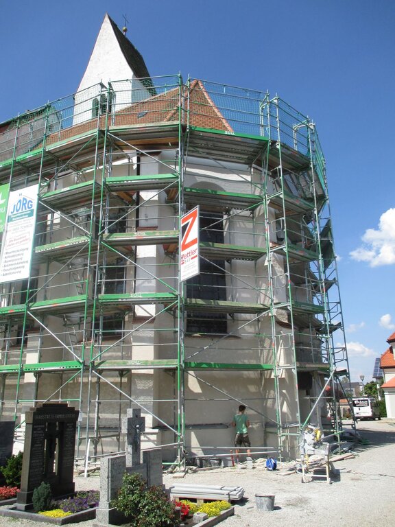 Pfarrkirche St.Nikolaus Unterthingau., Restaurierung der Aussenfassade.