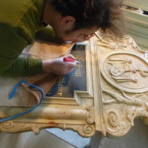 Lenbachhaus München, Restaurierung Epitaph, vorher.