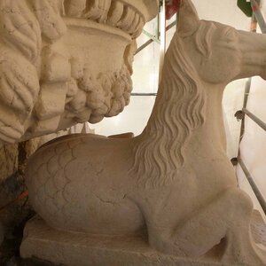 Lenbachhaus München, Restaurierung Hippokampenbrunnen, vorher.