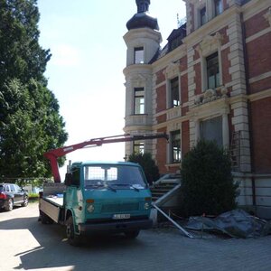 Schloß Salem, Marstallgebäude. Restaurierung der Aussenfassade. Vorher.